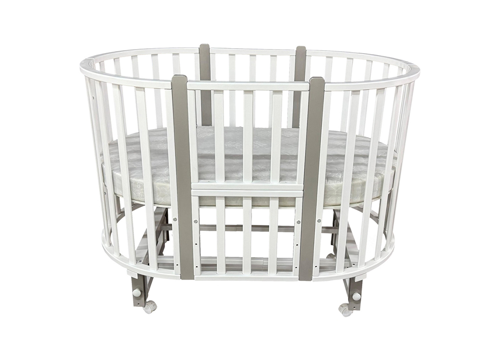 Детская кроватка Антел Malenkiy Princ предназначена для детей с рождения и до 3-4 лет с возможностью трансформации с круглой колыбельки в овальную кровать/диван. Кроватка оснащена продольным маятником с колесами. Маятник позволит плавно покачивать кроватку из стороны в сторону, позволяя ребенку настроиться на сон, крепче и дольше спать. Колеса позволят легко перемещать кровать по квартире. Маятник можно использовать с колесами или без.